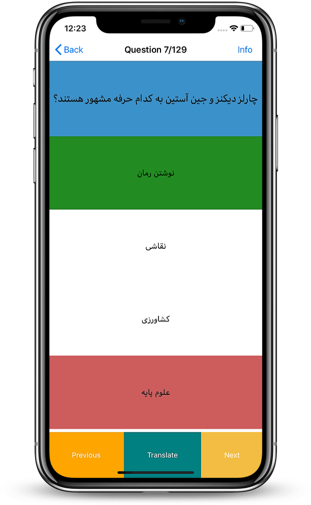This app contains all of contents and questions required to prepare for the Life in the UK test in both English and Farsi